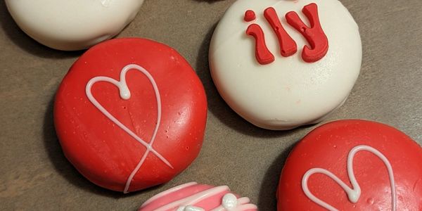 Simple Design Oreos with added designs such as chocolate numbers, letters, snowflakes, etc.